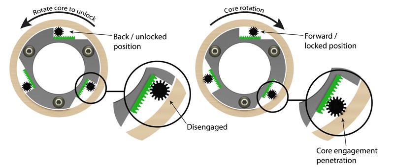 Do you need bi-directional locking? Some mechanical core chucks offer locking in one core rotation direction only and unlock in the opposite core rotation. Some mechanical core chucks will lock with either rotational direction and unlock in the middle of the travel between the two lock positions.